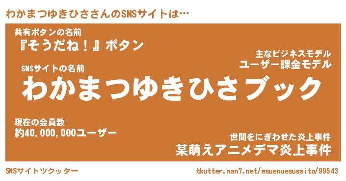 | 胡散臭い通販商品みたいなあだ名 | 『億万長者になれるブレスレット…その名も「わかまつゆきひさ」』 |