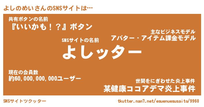 | ポケモン風あだ名 | 『ヨシチュウ』『ヨシノダネ』 |