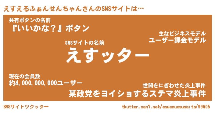 | 胡散臭い通販商品みたいなあだ名 | 『億万長者になれる水晶球…その名も「えすえるふぁんせんちゃん」』 |