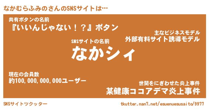 | 男性向けラノベタイトル風あだ名 | 『なかむらふみのの憂鬱』 |
