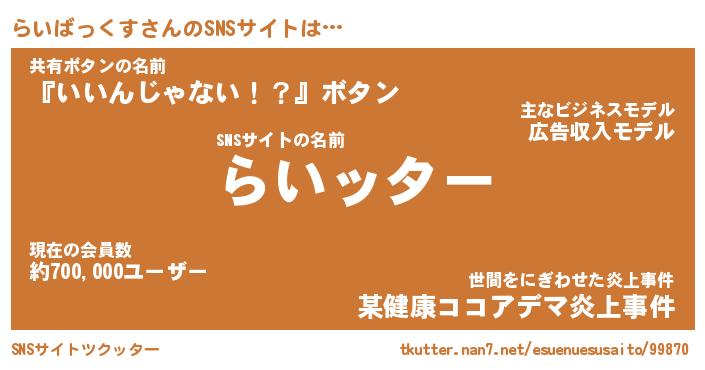 | 胡散臭い通販商品みたいなあだ名 | 『億万長者になれる霊験あらたかなお札…その名も「らいばっくす」』 |