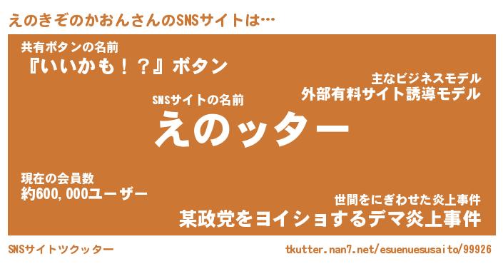 | ツイッター | えのきぞのかおんさんのツイッターID『fukuyoka_nyan』 |