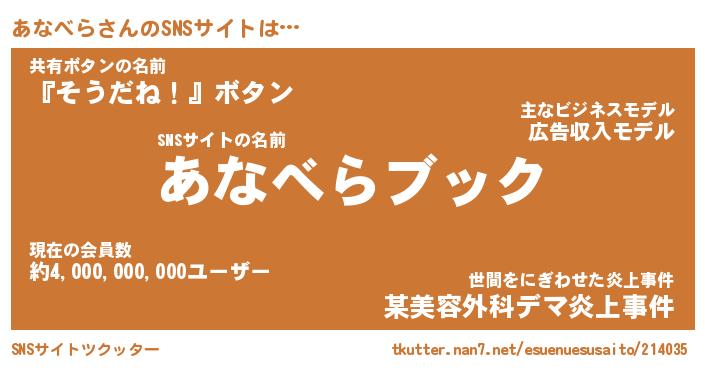 | 意味不明あだ名 | 『ペロリンあなべら』『永久保存あなべら』 |