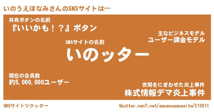 | 胡散臭い通販商品みたいなあだ名 | 『億万長者になれる霊験あらたかなお札…その名も「いのうえほなみ」』 |