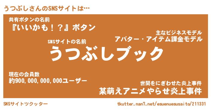 | 胡散臭い通販商品みたいなあだ名 | 『億万長者になれるブレスレット…その名も「うつぶし」』 |
