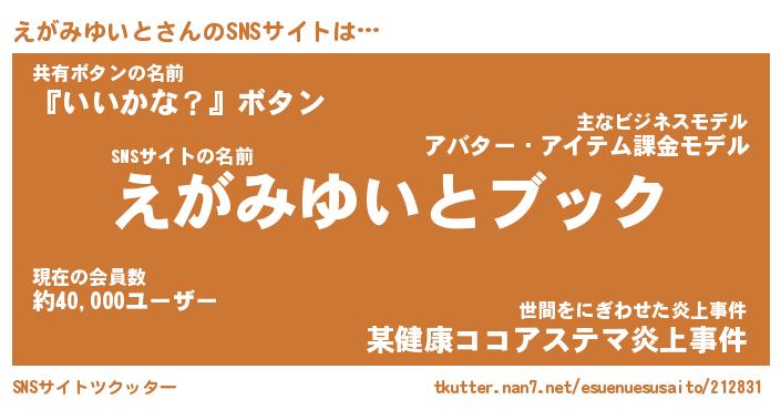 | 恥ずかしいあだ名 | 『プリティーえがみゆいと』『えがっちょ』 |
