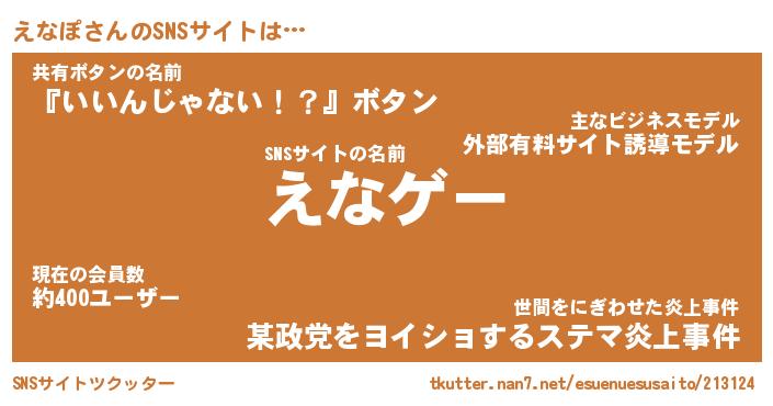 | 肩書あだ名 | 『えなぽ御曹司』『えなぽ大統領』 |