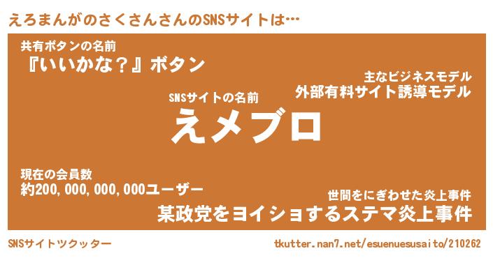 | 男性向けラノベタイトル風あだ名 | 『エロマンガノサクサンアートオンライン』 |
