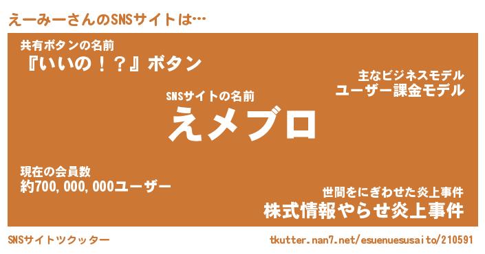 | 肩書あだ名 | 『えーみー社長』『えーみー総理大臣』 |