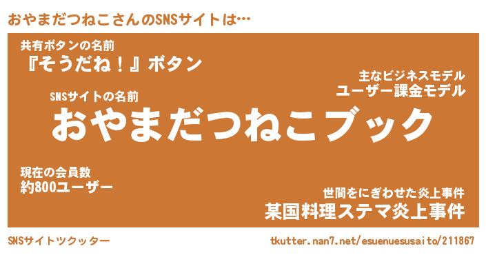 | 男性向けラノベタイトル風あだ名 | 『オヤマダツネコアートオンライン』 |