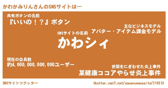 | 胡散臭い通販商品みたいなあだ名 | 『必ず成功する霊験あらたかなお札…その名も「かわかみりん」』 |