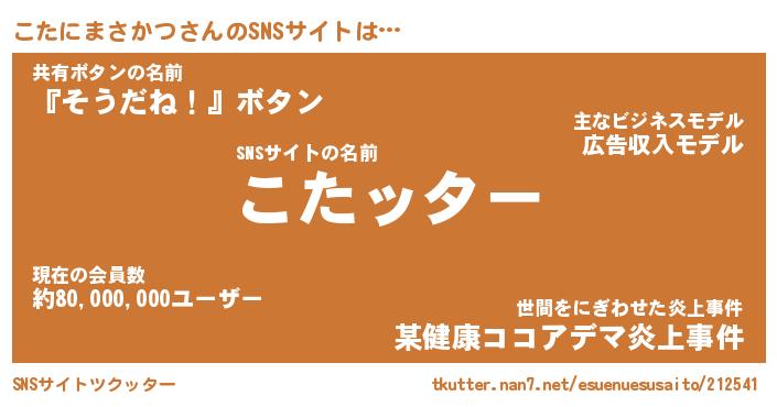 | 肩書あだ名 | 『こたにまさかつ御曹司』 |