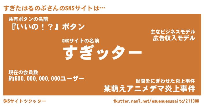 | 男性向けラノベタイトル風あだ名 | 『スギタハルノブアートオンライン』 |