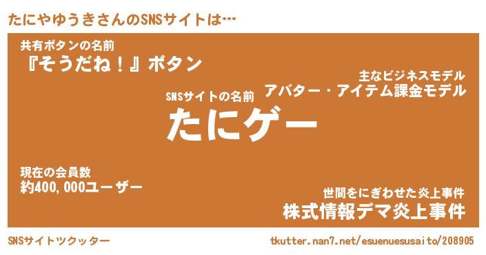 | ポケモン風あだ名 | 『タニチュウ』『タニヤダネ』 |