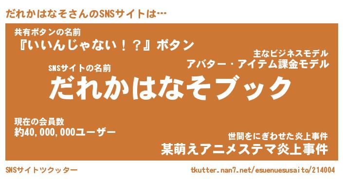 | 男性向けラノベタイトル風あだ名 | 『ダレカハナソアートオンライン』 |
