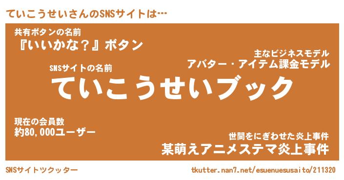 | ツイッター | ていこうせいさんのツイッターID『namakemono_kun』 |