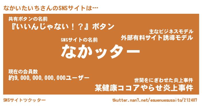 | 男性向けラノベタイトル風あだ名 | 『ナカイタイチアートオンライン』 |