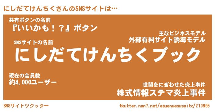 | 男性向けラノベタイトル風あだ名 | 『ニシダテケンチクアートオンライン』 |