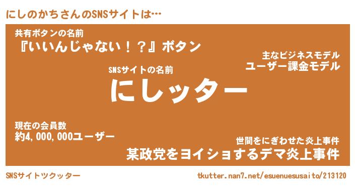 | 肩書あだ名 | 『にしのかち社長』『にしのかち大統領』 |