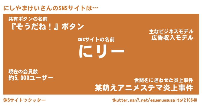 | ポケモン風あだ名 | 『ニシチュウ』『ニシヤダネ』 |