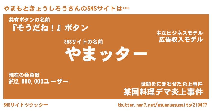 | 胡散臭い通販商品みたいなあだ名 | 『億万長者になれる水晶球…その名も「やまもときょうしろう」』 |