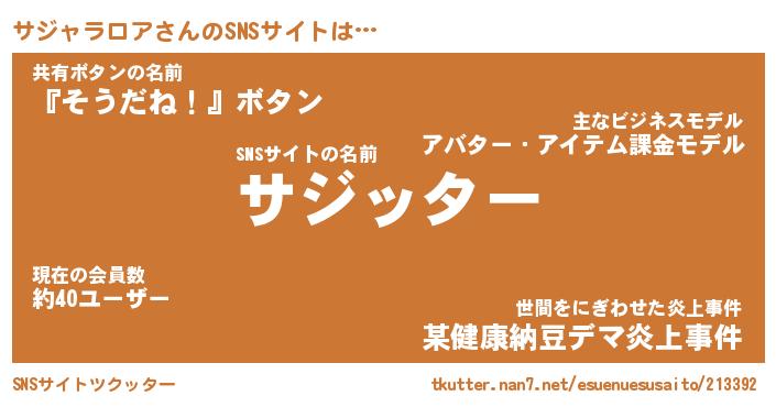 | 肩書あだ名 | 『サジャラロア社長』 |