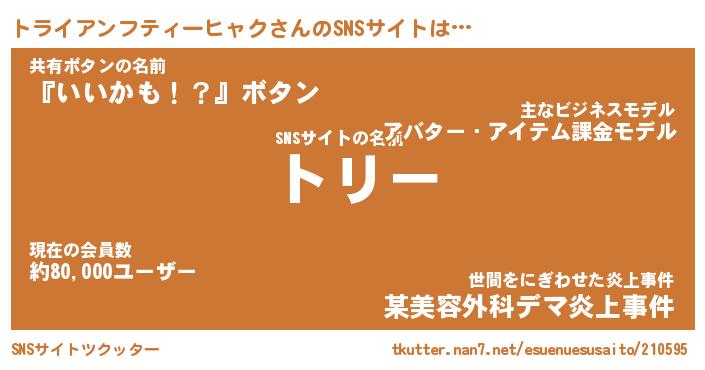 | 男性向けラノベタイトル風あだ名 | 『トライアンフティーヒャクの憂鬱』 |