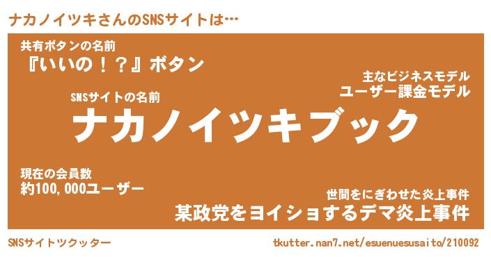 | 男性向けラノベタイトル風あだ名 | 『ナカノイツキアートオンライン』 |