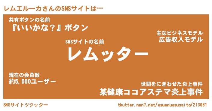 | 肩書あだ名 | 『レムエルーカ社長』『レムエルーカ塾長』 |