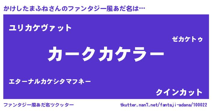| 男性向けラノベタイトル風あだ名 | 『うちのかけしたまふねが世界を掌握している!』 |