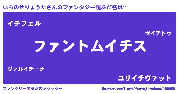 | 意味不明あだ名 | 『とにかく怪しいいちのせりょうた』 |