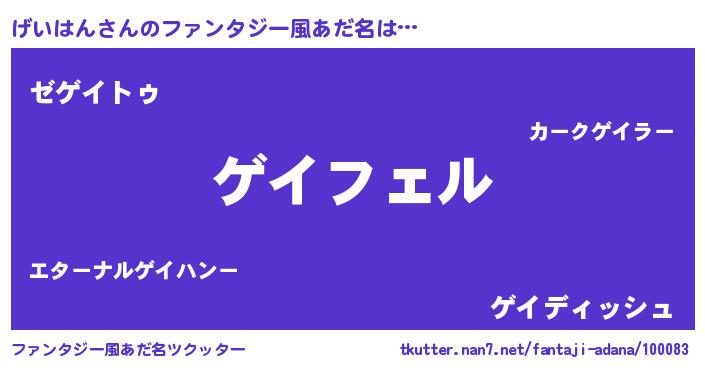 | 意味不明あだ名 | 『ペロリンげいはん』『自称げいはん』 |