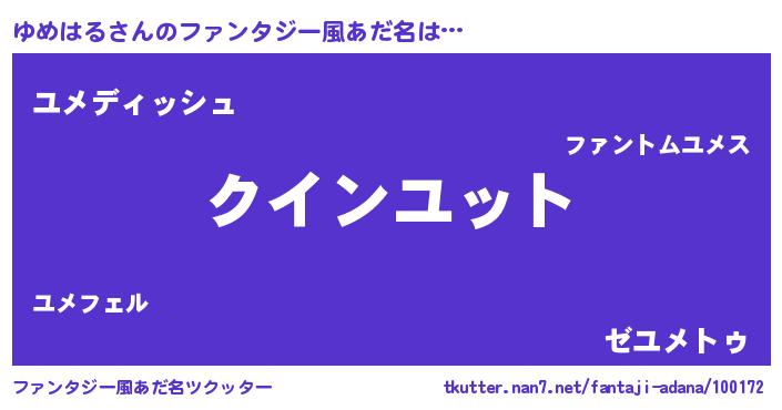 | ポケモン風あだ名 | 『ユメゴンZ』『ユックウザ』 |