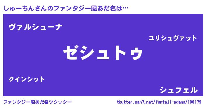 | 男性向けラノベタイトル風あだ名 | 『しゅーちんに滅ぼされるだけの簡単なお仕事です』 |