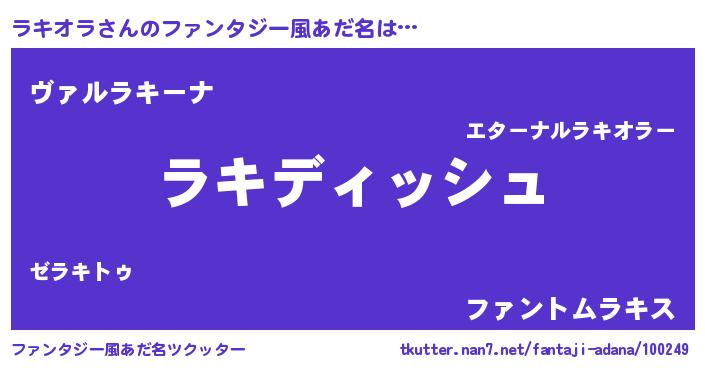 | ポケモン風あだ名 | 『ラキゴンZ』『ゼニラキ』『ラーキイ』 |