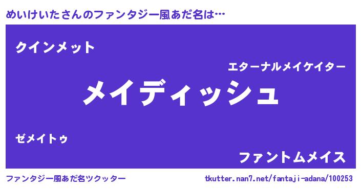 | 意味不明あだ名 | 『永久保存めいけいた』『自称めいけいた』 |