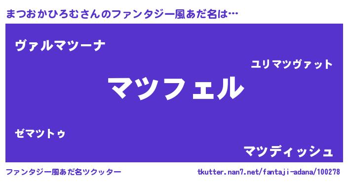| 男性向けラノベタイトル風あだ名 | 『まつおかひろむの憂鬱』 |
