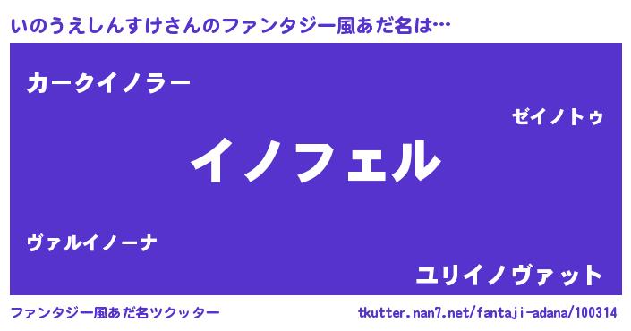 | 男性向けラノベタイトル風あだ名 | 『いのうえしんすけの憂鬱』 |