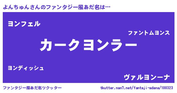 | 意味不明あだ名 | 『ペロリンよんちゅん』『自称よんちゅん』 |