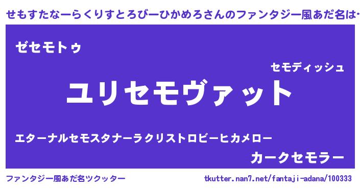 | 男性向けラノベタイトル風あだ名 | 『セモスタナーラクリストロビーヒカメロスレイヤー』 |