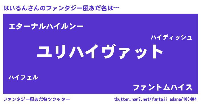 | 男性向けラノベタイトル風あだ名 | 『はいるんに滅ぼされるだけの簡単なお仕事です』 |
