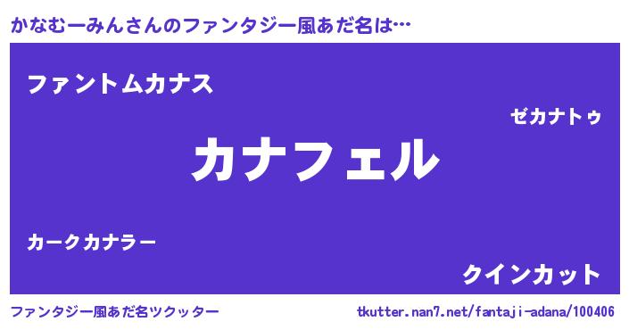 | 男性向けラノベタイトル風あだ名 | 『カナムーミンアートオンライン』 |