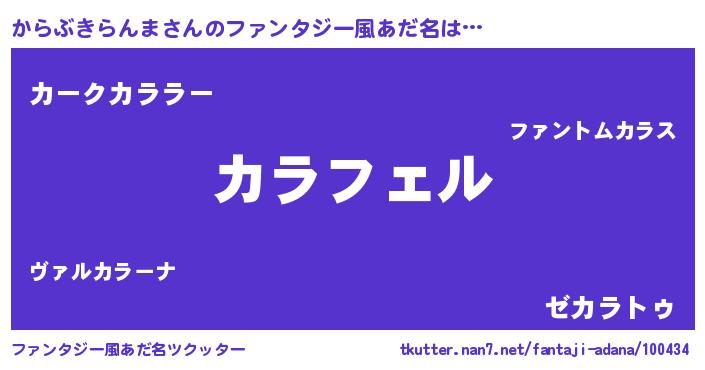 | 男性向けラノベタイトル風あだ名 | 『カラブキランマアートオンライン』 |
