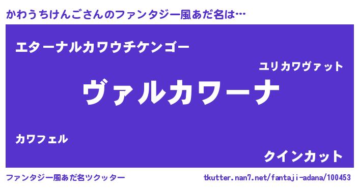 | 男性向けラノベタイトル風あだ名 | 『この素晴らしい世界にかわうちけんごを!』 |