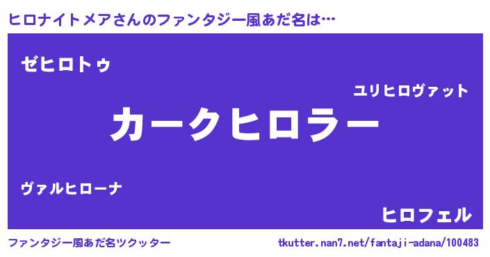 | ヘコむあだ名 | 『ヒロにー』『ヒロナイトメア(遠い目)』 |