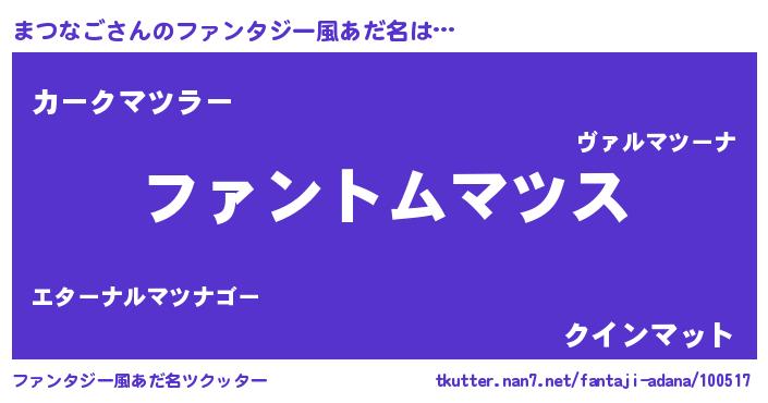 | 胡散臭い通販商品みたいなあだ名 | 『信頼と実績のサプリメント…その名も「まつなご」』 |