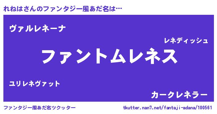| 女子向けラノベタイトル風あだ名 | 『れねはの卵を拾いまして』 |