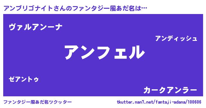 | 男性向けラノベタイトル風あだ名 | 『アンブリゴナイトの憂鬱』 |