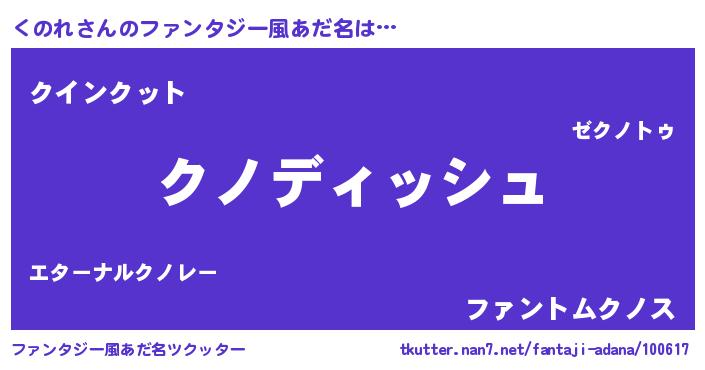 | 女子向けラノベタイトル風あだ名 | 『くのれの契約王妃』『闇のくのれ』 |