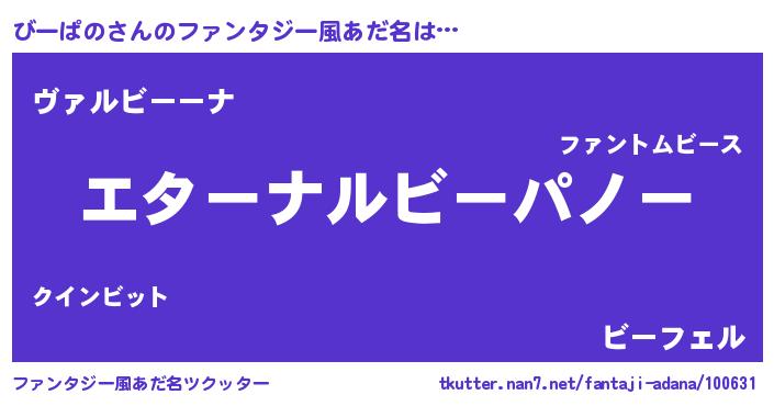 | ポケモン風あだ名 | 『ビーパダネ』『ビーゴンZ』 |